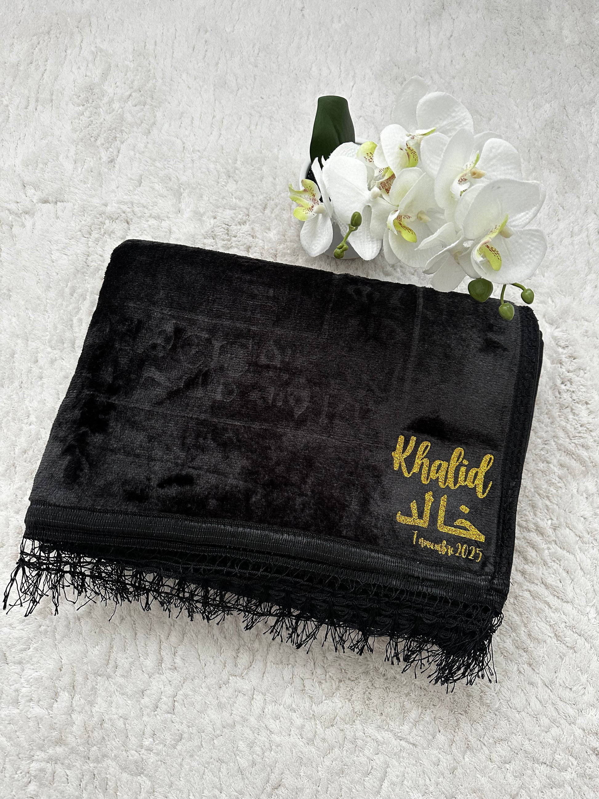 🖤 Tapis de prière épais personnalisé – Noir velours 🖤